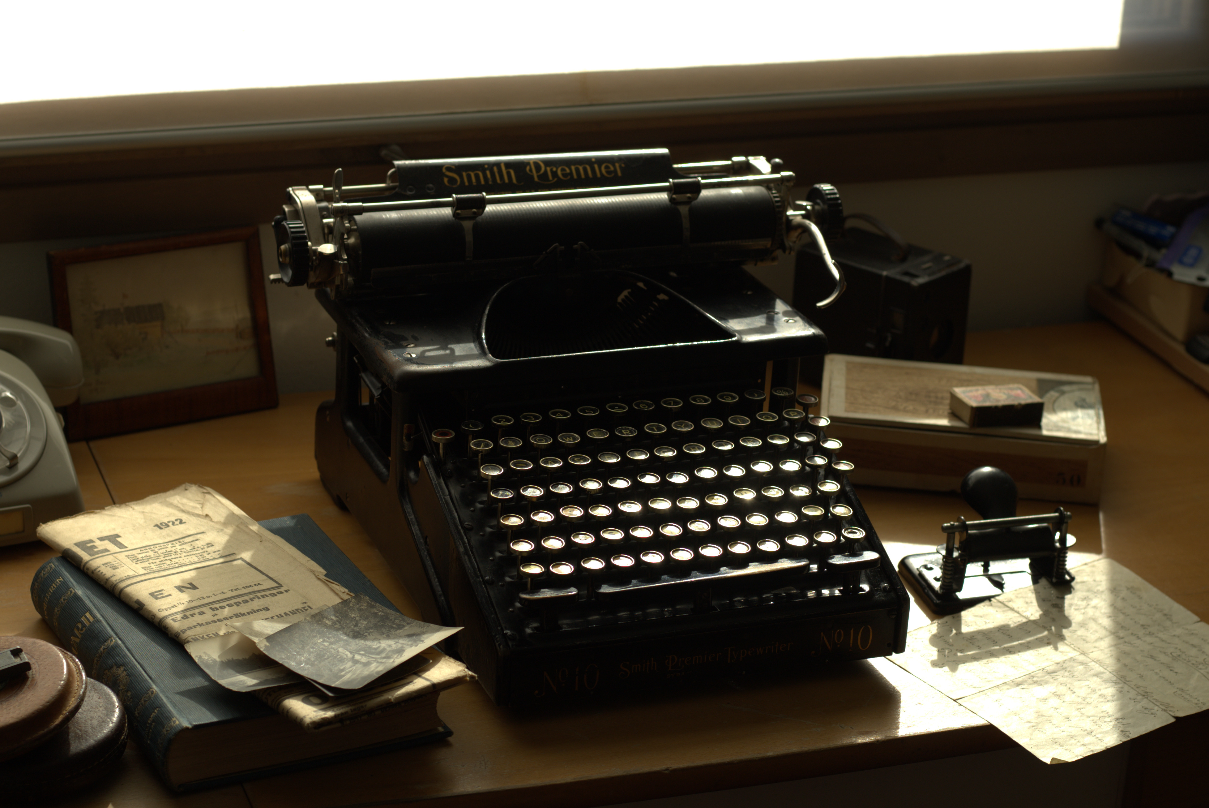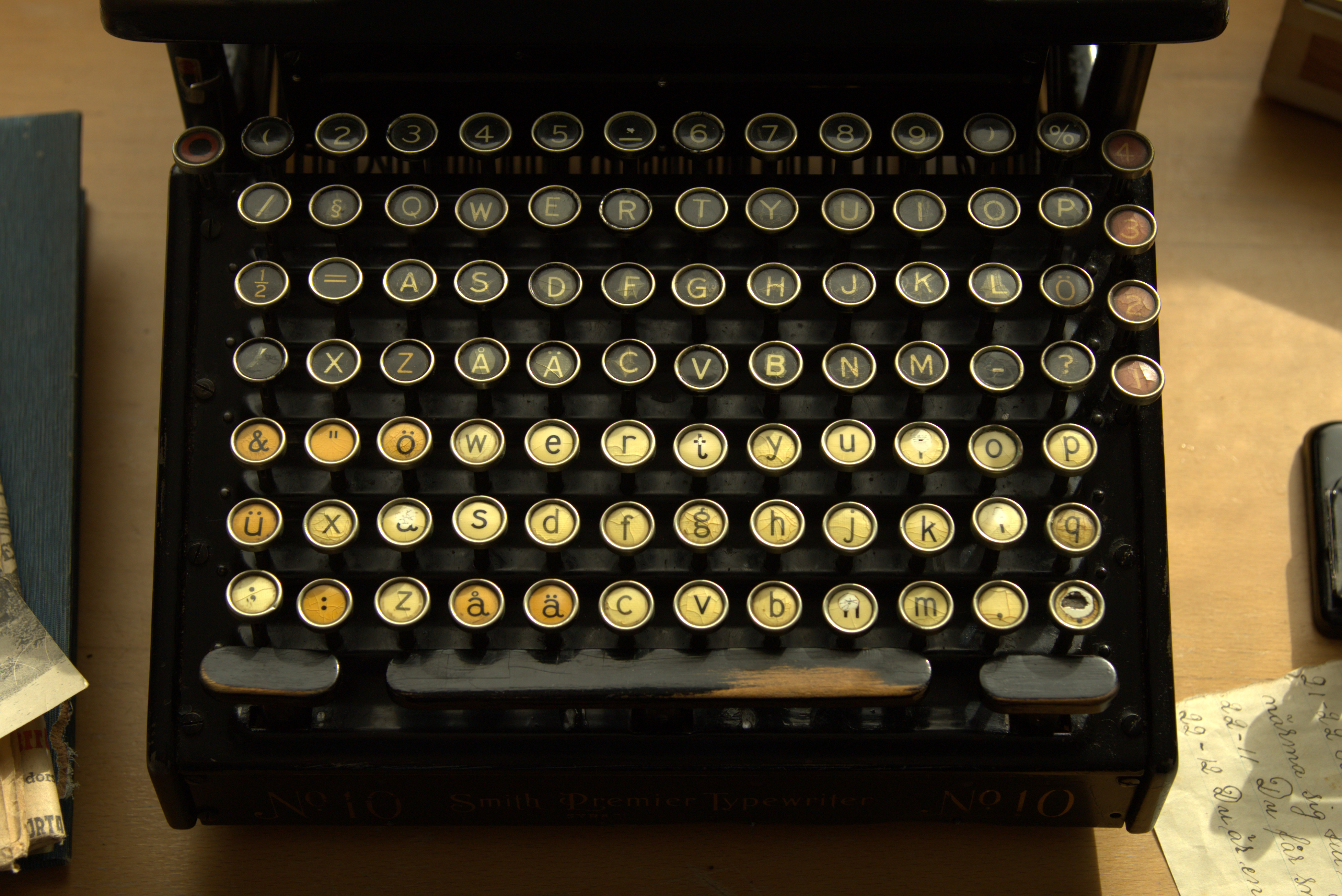 Вот это, например, Smith Premier 1921 года, и у нее две отдельных секции для прописных и строчных букв.